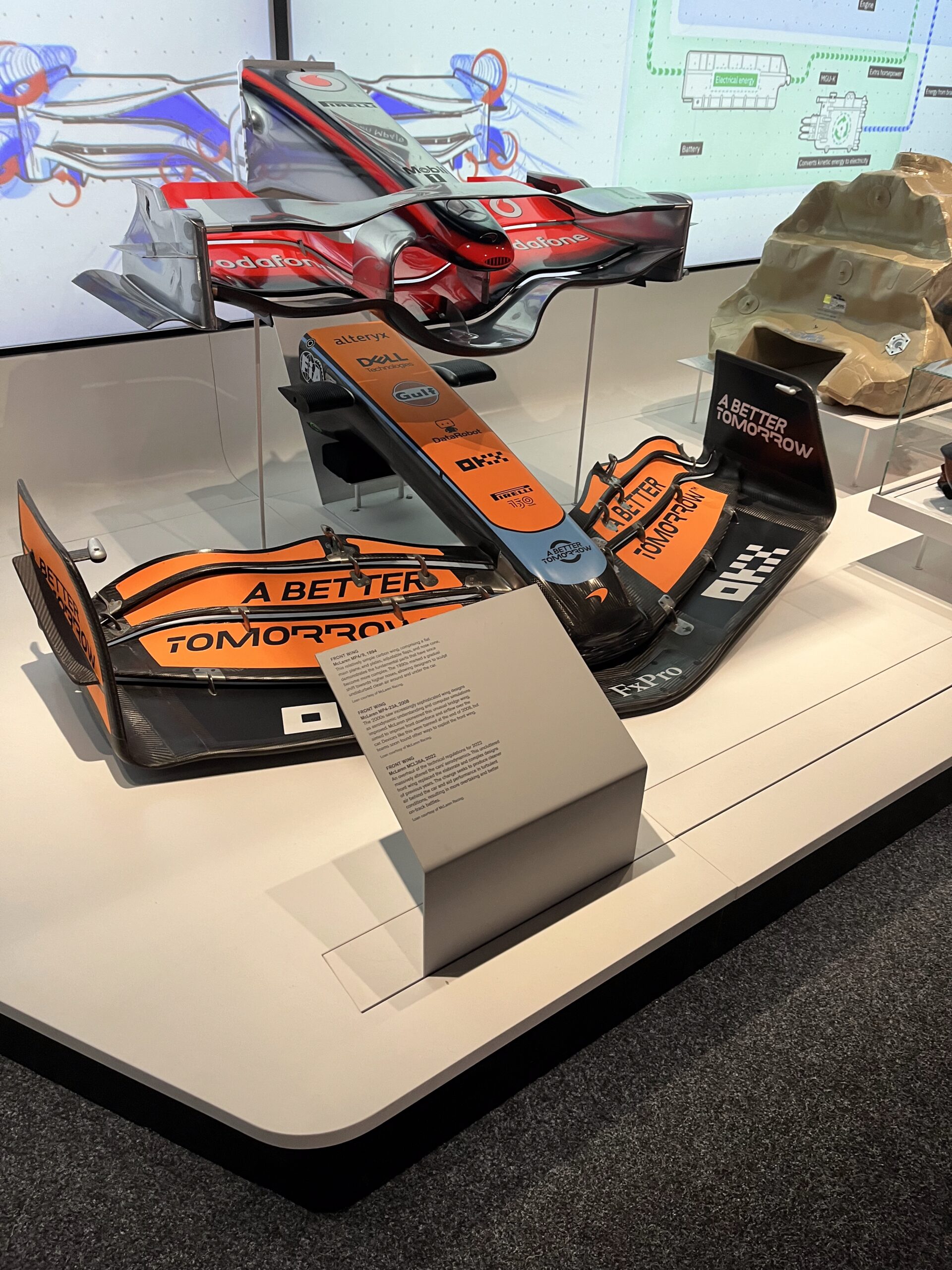 The front wing is responsible for guiding air around the rest of the car as it is the first part of the car that encounters undisturbed air. It prepares the air flow, so it hits the car in the correct way to optimise the other aspects of the car. Made up of many components, it is often developed throughout the course of the F1 season however, the regulations for a front wing are very strict, creating very little freedom and variation from other cars in the paddock [5].